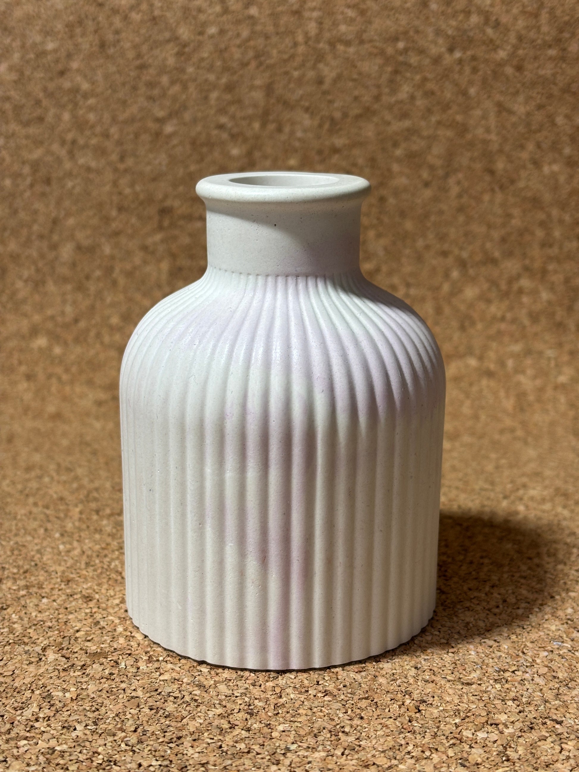 MŪU is a softly rounded gypsum vase, reminiscent of a small bottle. Its gentle curves bring a sense of calm, warmth, and tactile balance. Perfect for dried flowers, branches, or simply as a sculptural element in your space.